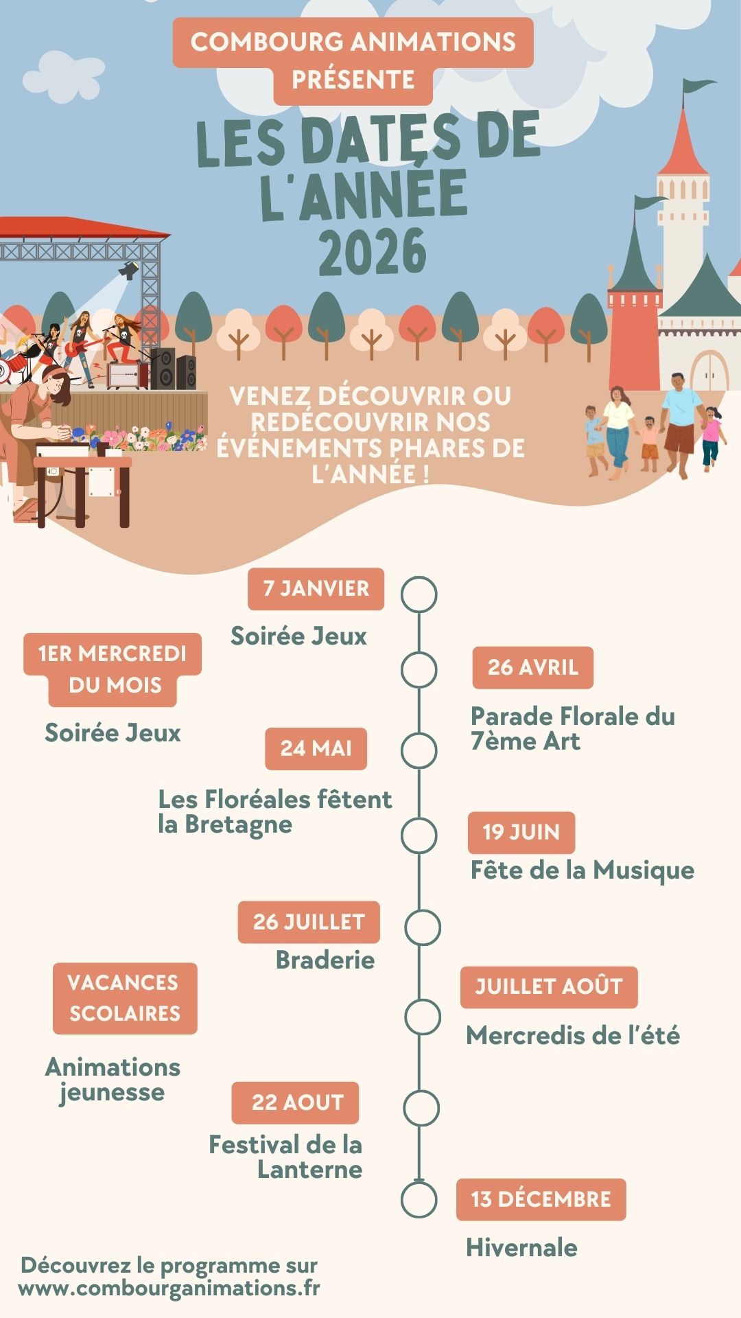 Association loi 1901, Combourg Animations a vu le jour en mai 2021 avec pour objectif : « Offrir aux Combourgeoises et Combourgeois, de tous âges, des animations variées, de qualité, créatrices de lien social. »